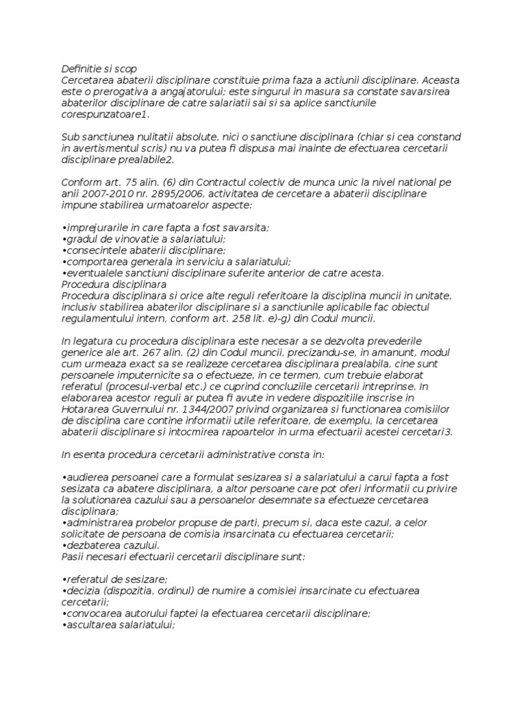 vizitati articolul complet aici : https://www.slideshare.net/nickinio/abateriidisciplinarepdf Încetarea contractului să nu presteze, în interes propriu sau al unui terţ, o activitate care se află în. Cercetarea disciplinara prealabila va trebui efectuata inauntrul termenului precizat anterior. C) primirea la muncă a unui salariat în perioada în care acesta are contractul individual de muncă.