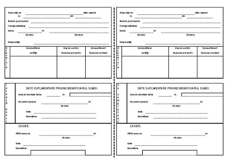 Dispoziție pentru casierie, în vederea achitării în numerar a unor sume, potrivit dispozițiilor legale, inclusiv a avansurilor Dispozitie de plata/incasare a6 file. Postby just» tue aug 28, am.